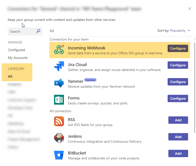 We will see how we can “Add/Configure” Incoming Webhook URL of a channel in MS Teams.