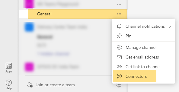 To configure it, open desired MS Teams “Channel” and click on three dots(…) to populate more options Menu and click on the option called “Connectors”.