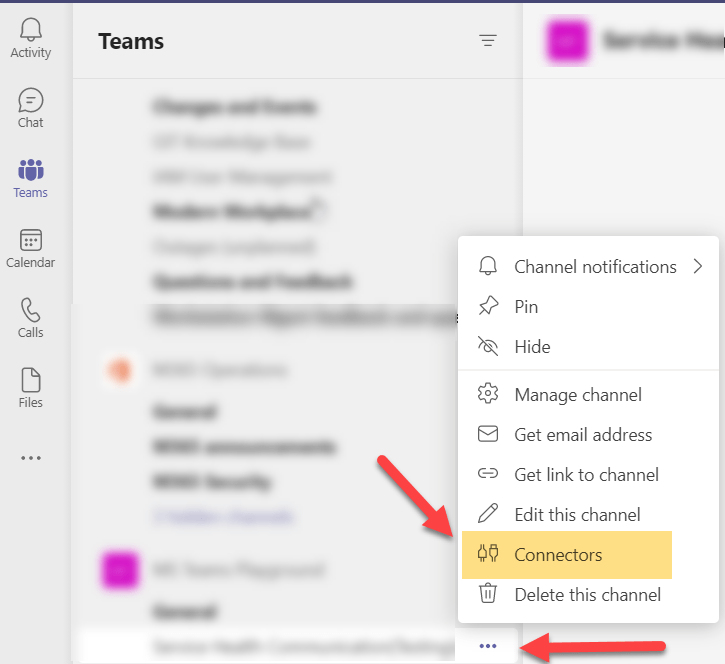 - First go to the channel where Webhook URL is already configured and click(…) for more options.
