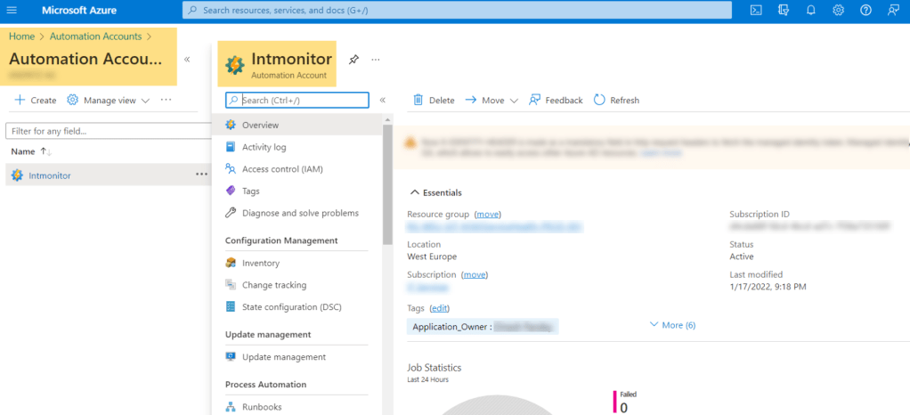 - An Azure automation account