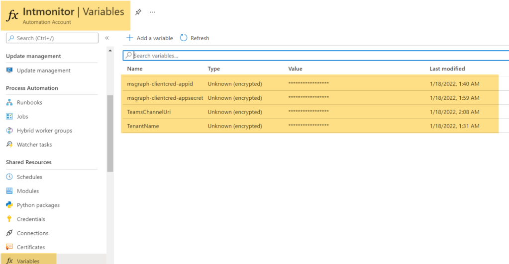 $AppID = Get-AutomationVariable -Name "msgraph-clientcred-appid"