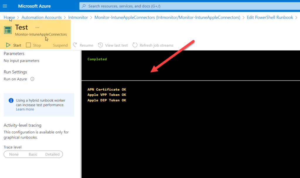This script is written to be used in an Azure Automation runbook to monitor your Intune deployment connectors.