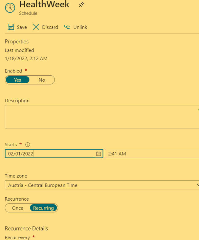 Once tested, it can be scheduled as per desired date and timings under schedule blade, screenshot attached for the reference.