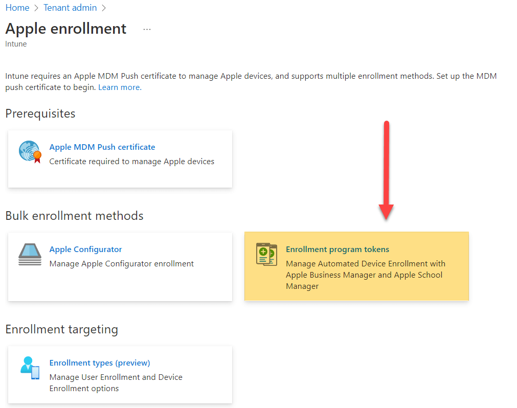 Now, it will take you to Apple Enrollment section, where, you need to select “Enrollment program tokens”