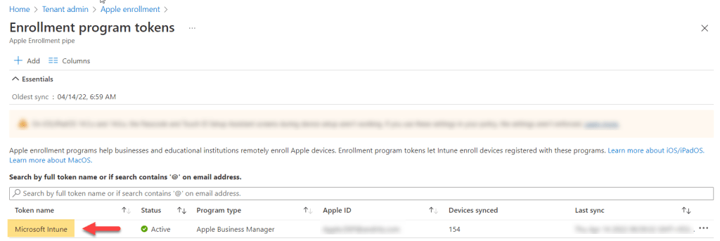 And it will list out the Token list integrated with the tenant, go into the ABM token listed in the list.