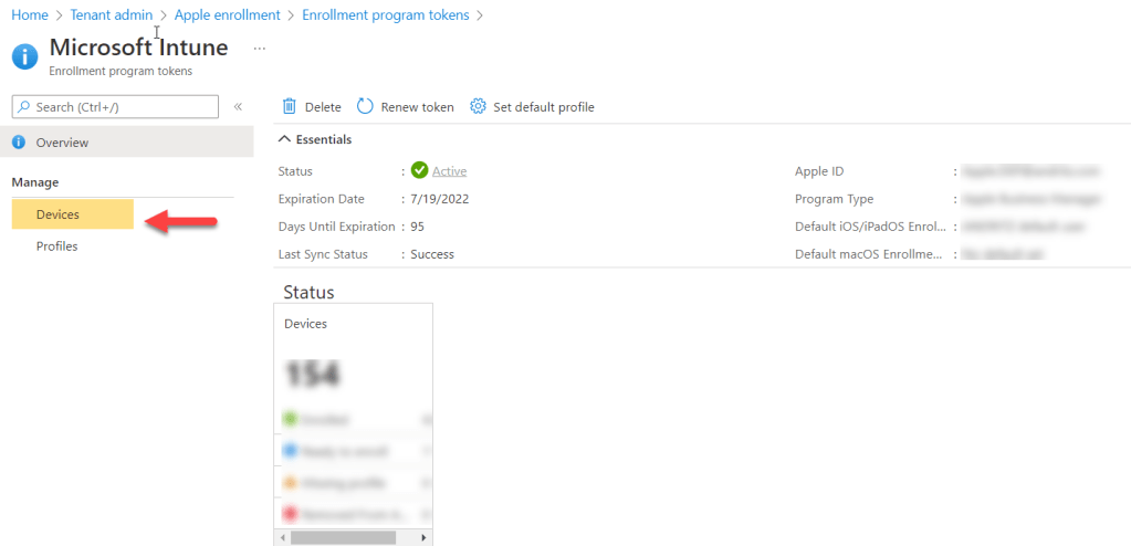 We have now Token overview with all the details, now go into Devices blade on the left hand side.